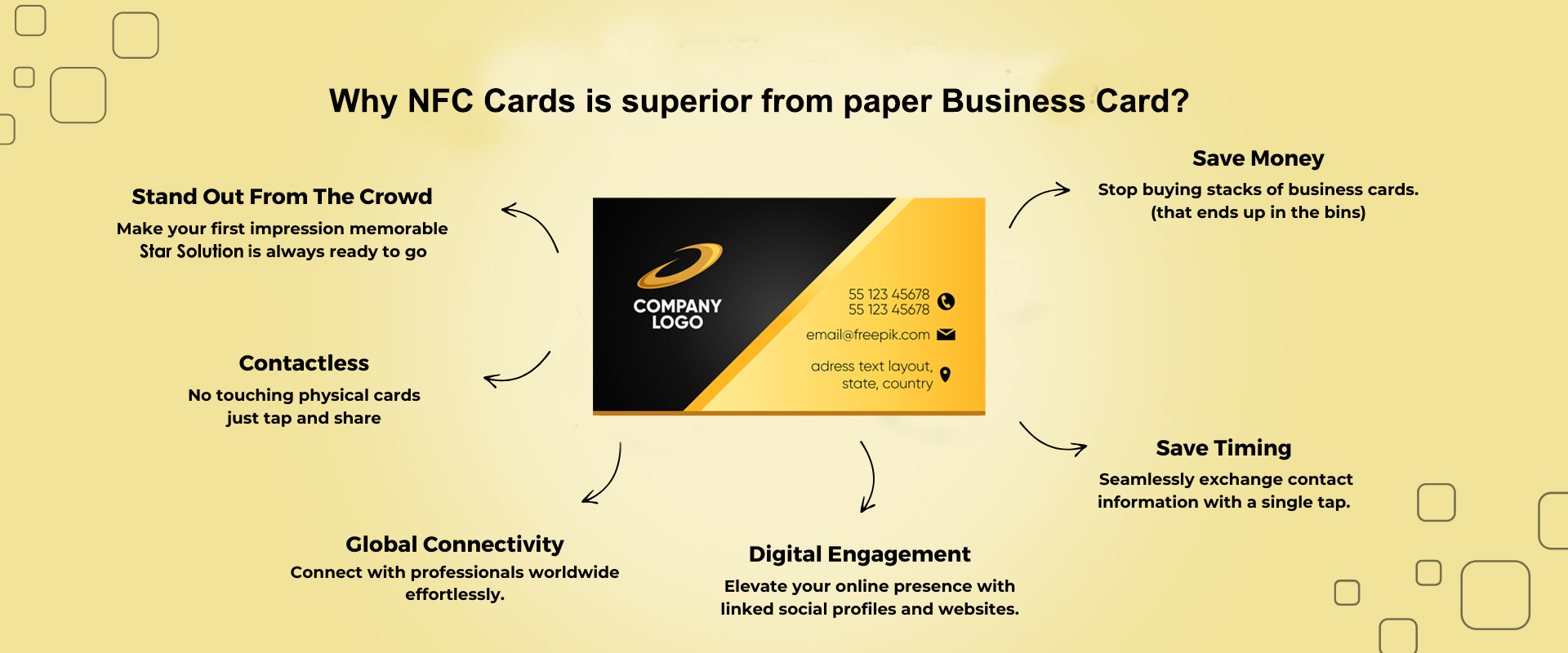 People rarely save phone numbers from paper business cards. In the digital age, everyone wants technology that is easy, quick, and simple to use. With the next generation of smart business cards, you can do just that. Star Solution and Services business cards are an innovative way to share your contact information and save it directly to customers’ smartphones. You can share them anywhere and anytime. It is paperless and eco-friendly.